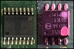 and on the right is a SOIC-8 flash chip from my HP Envy printer.